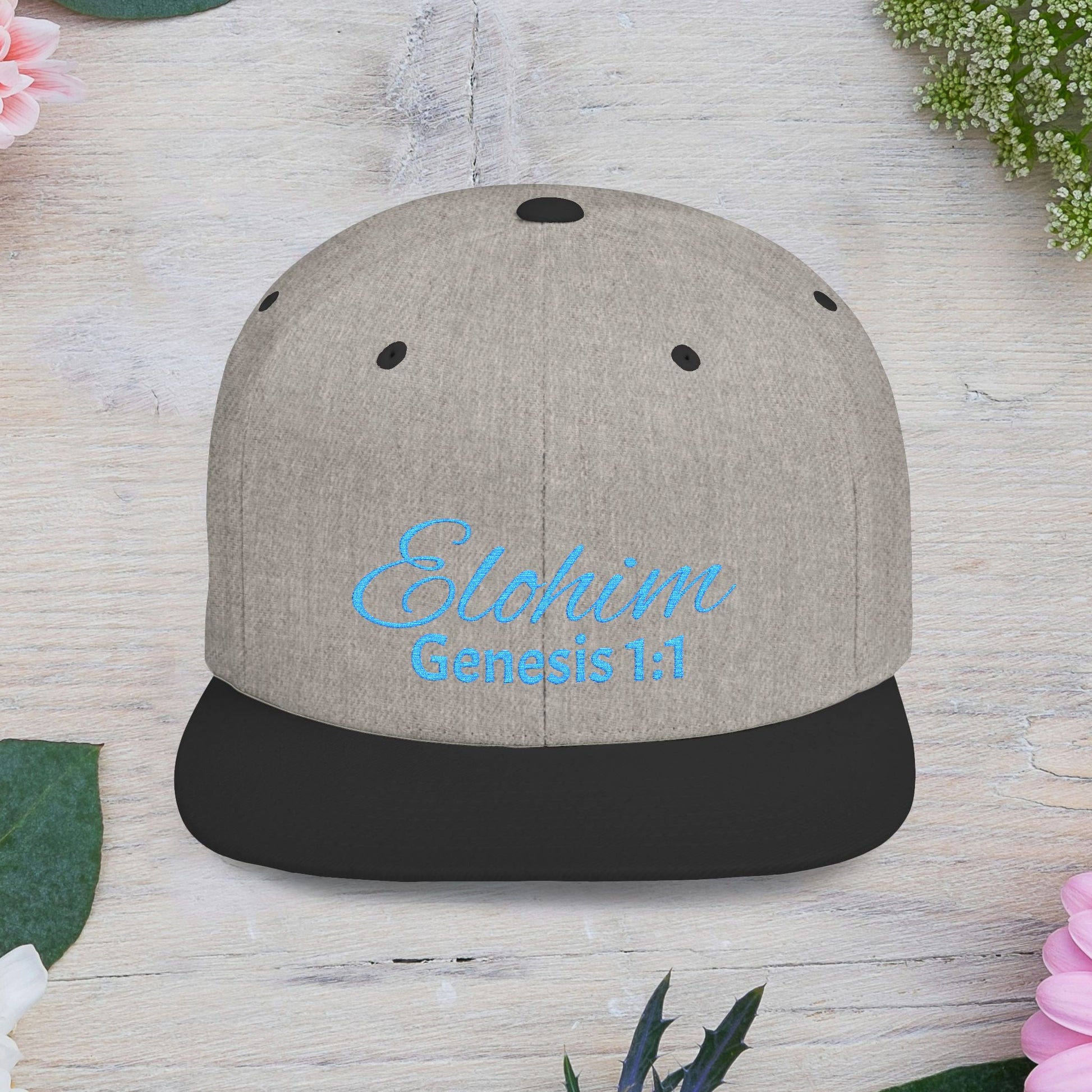 Teal Embroidery 'ELOHIM, GENESIS 1:1' Flat Bill Snapback Hat, Stylish Cap for Everyday Wear, Church Events, Gift for Him/Her, Streetwear Accessory, Casual Fashion