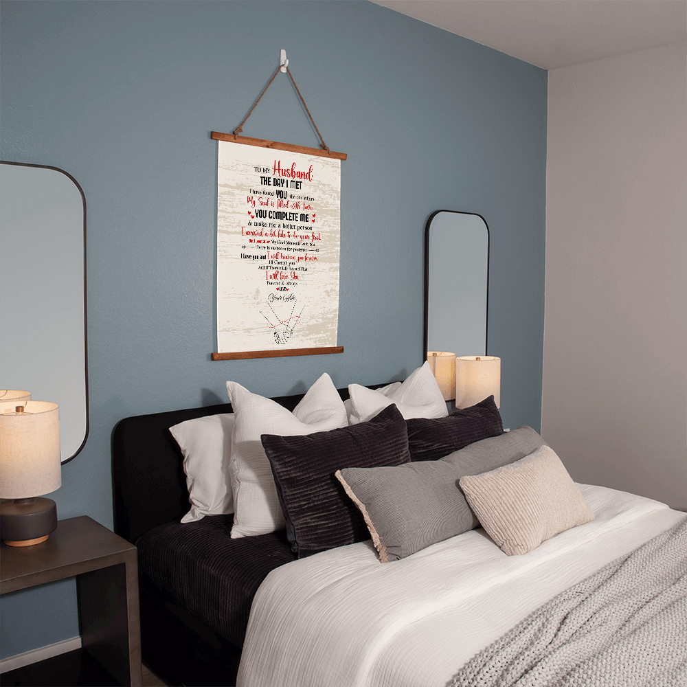 “The Day I Met You” Romantic Husband Wood Framed Wall Tapestry Gift Scroll- A Gift for a Husband.
