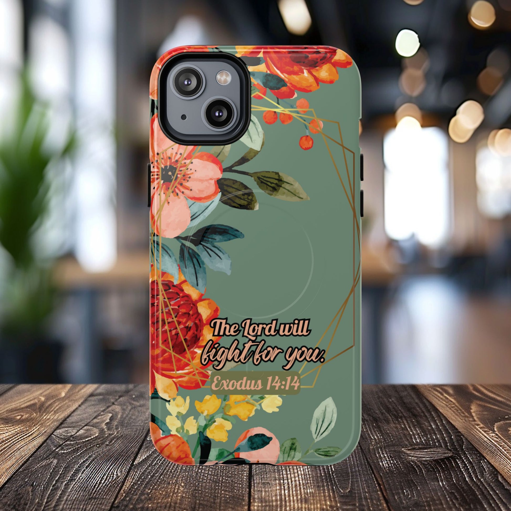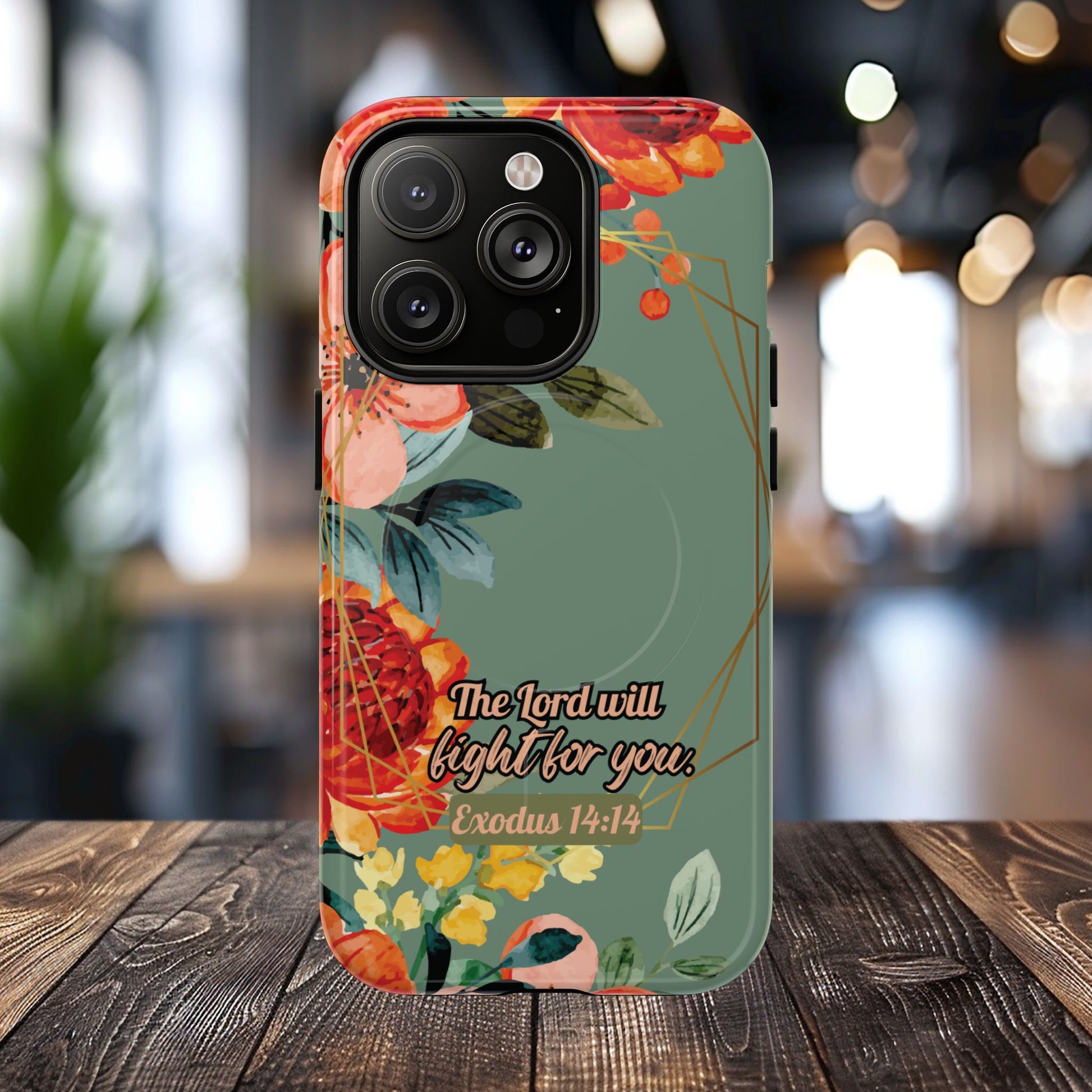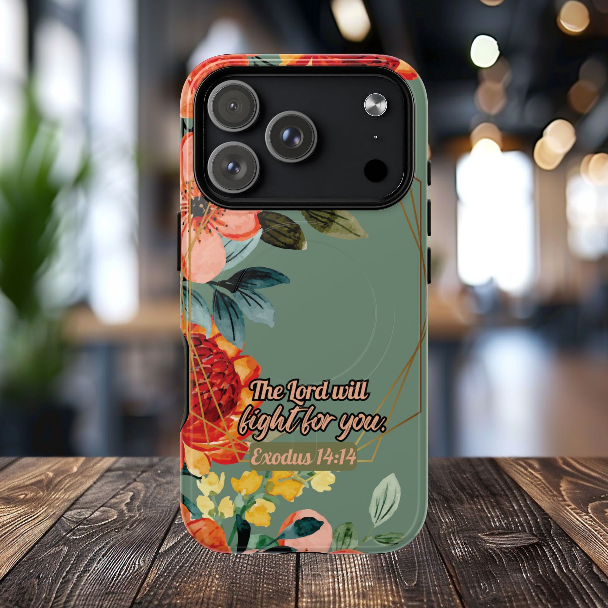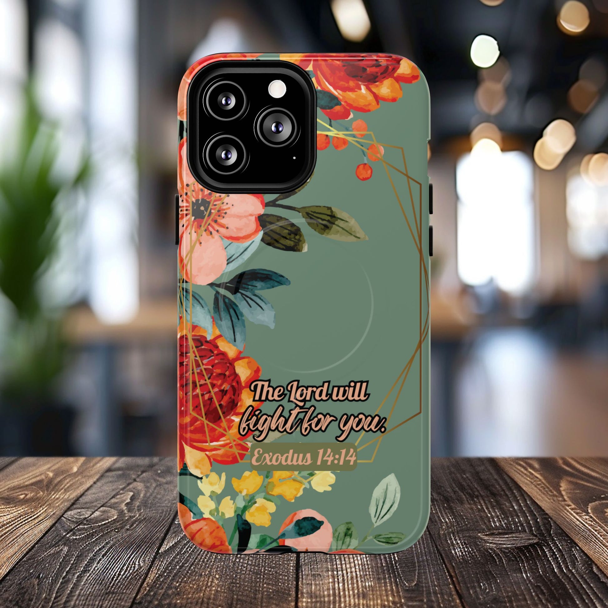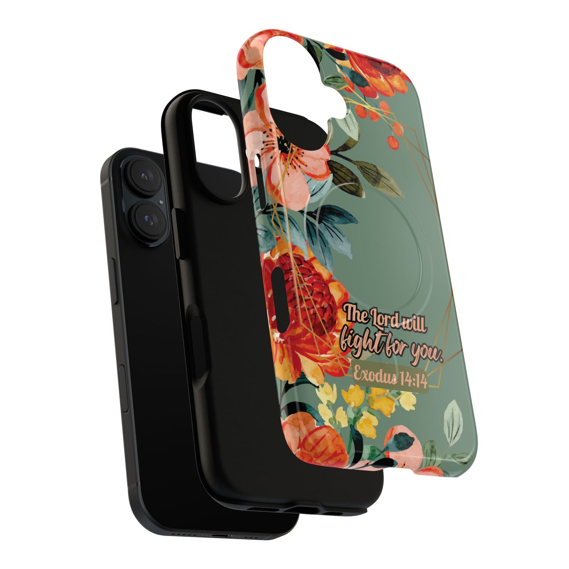 The Lord will Fight for You Exodus 14:14, Inspirational Gift, Tough iPhone Magnetic Case Scripture, Sunflower Bible Verse, MagSafe® iPhone® Tough Case, iPhone 14, iPhone 15, iPhone 16, Pro, Pro Max, Plus.