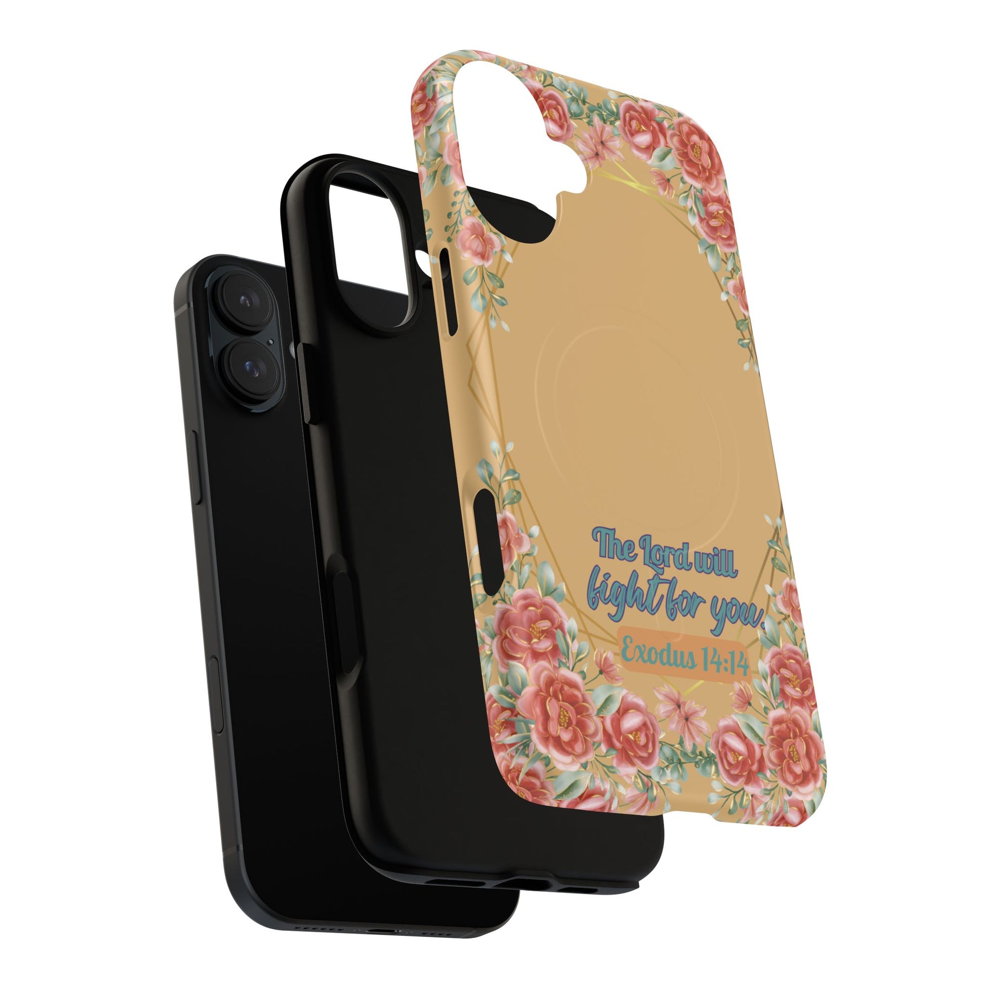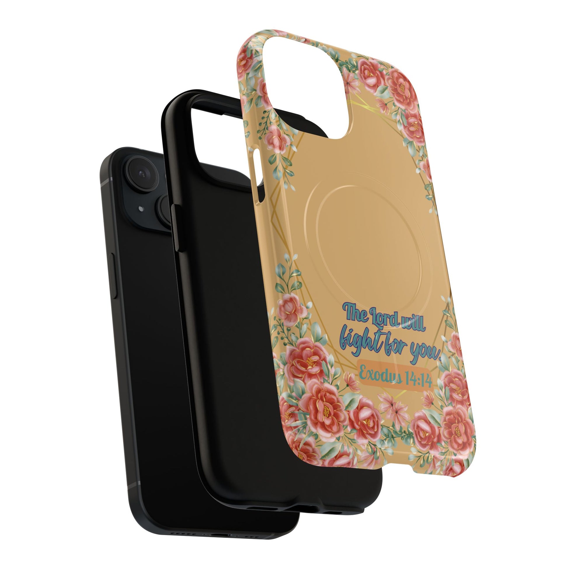 The Lord will Fight for You Exodus 14:14, Inspirational Gift, Tough MagSafe® Magnetic Case Scripture, Sunflower Bible Verse, iPhone® 13, 14, iPhone 15, iPhone 16, 17, Pro, Pro Max, Plus.