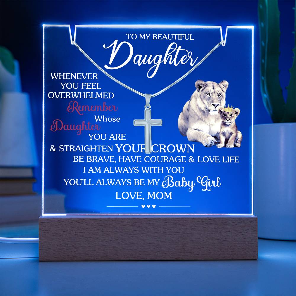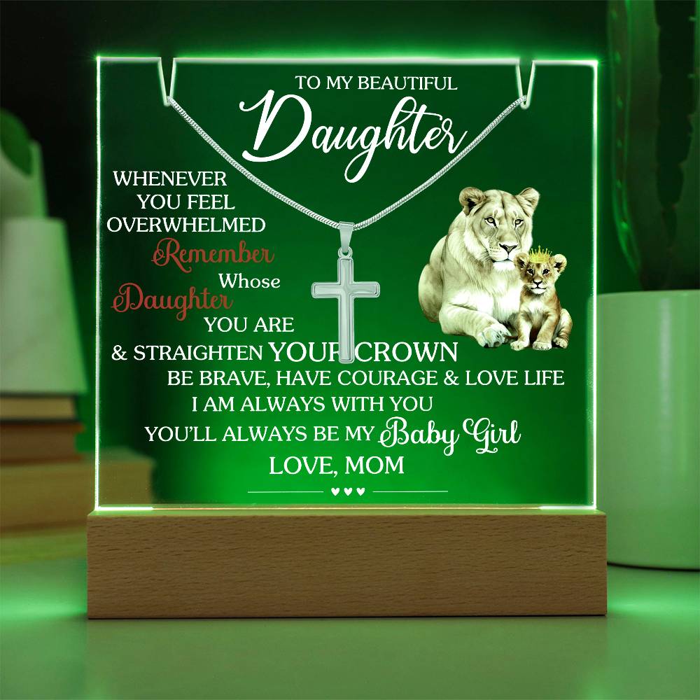 To My Beautiful Daughter- Stainless Steel Cross and Acrylic Keepsake Message - a Gift for your Daughter/Daughter-in-Law.