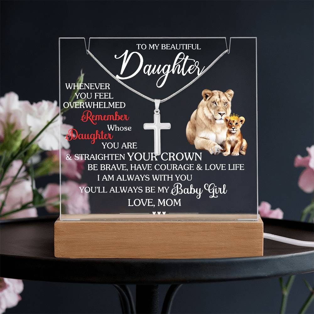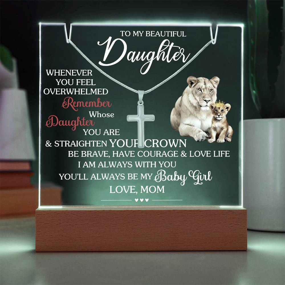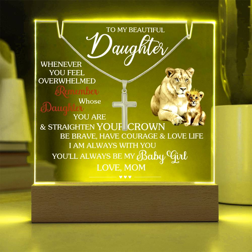 To My Beautiful Daughter, Whenever you feel overwhelmed REMEMBER whose DAUGHTER you are and strengthen your CROWN be Brave have courage and love life I am always with you. You will always be my Baby Girl, Love MOM.