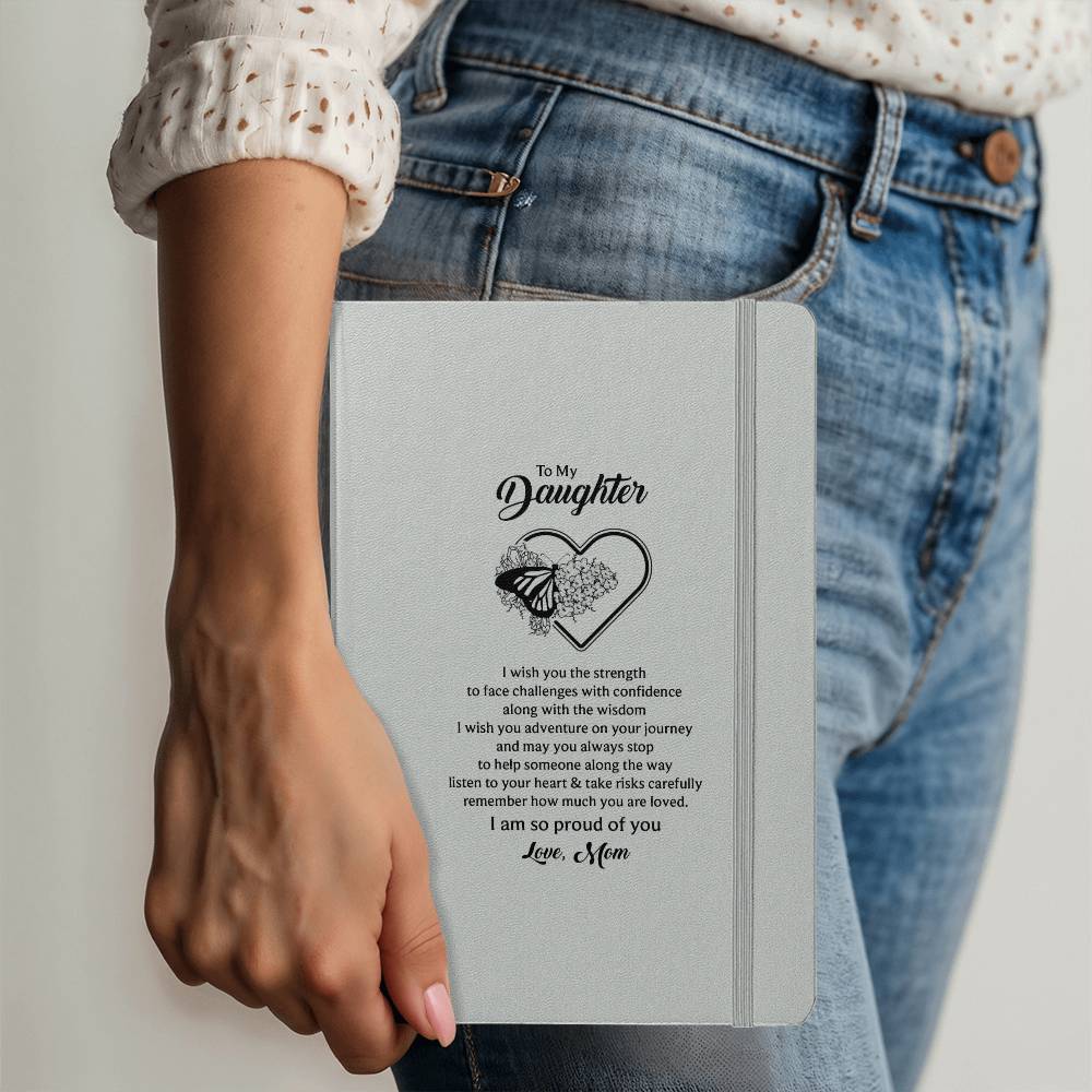 Discover the perfect blend of elegance and functionality with the To My Daughter Journal. This thoughtfully designed journal is ideal for capturing your personal reflections, daily musings, or important notes. With its sleek 5.5" x 8.5" UltraHyde hardcover, this notebook exudes sophistication, making it suitable for both professional settings and personal journaling.