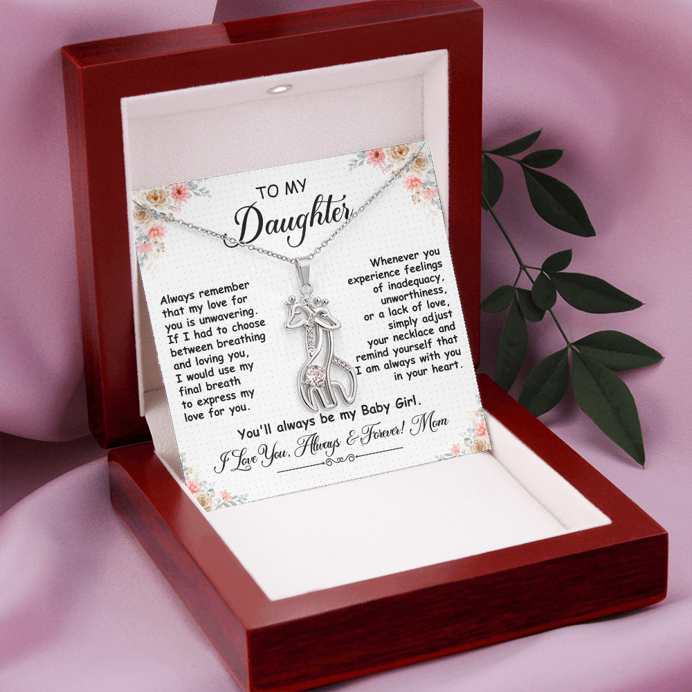 To My Daughter, Always remember that my love for you is unwavering. If I had to choose between breathing and loving you, I would use my final breath to express my love for you. Whenever you experience feelings of inadequacy, unworthiness, or a lack of love, simply adjust your necklace and remind yourself that I am always with you in your heart. You'll always be my Baby Girl. I love You, Always and Forever! Mom
