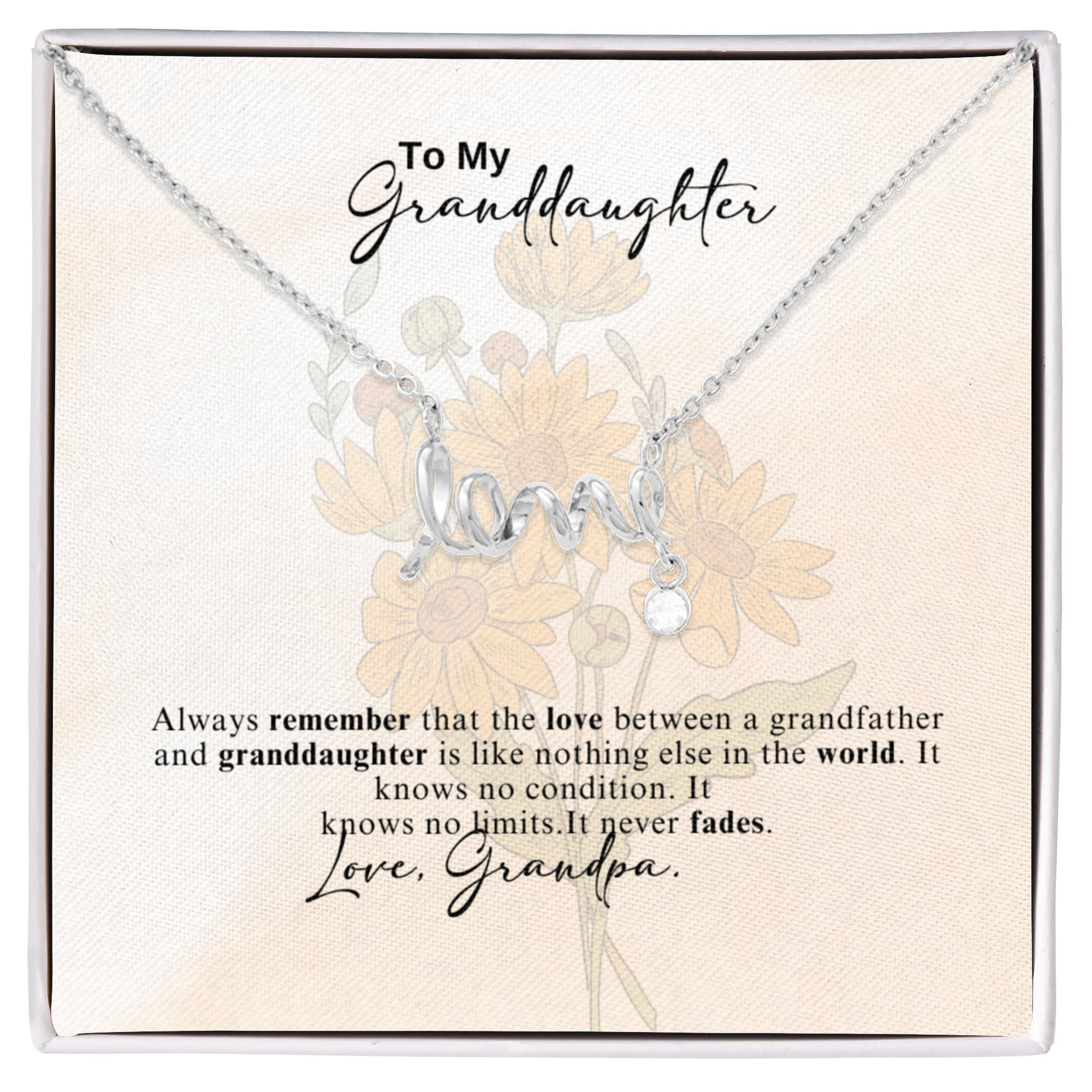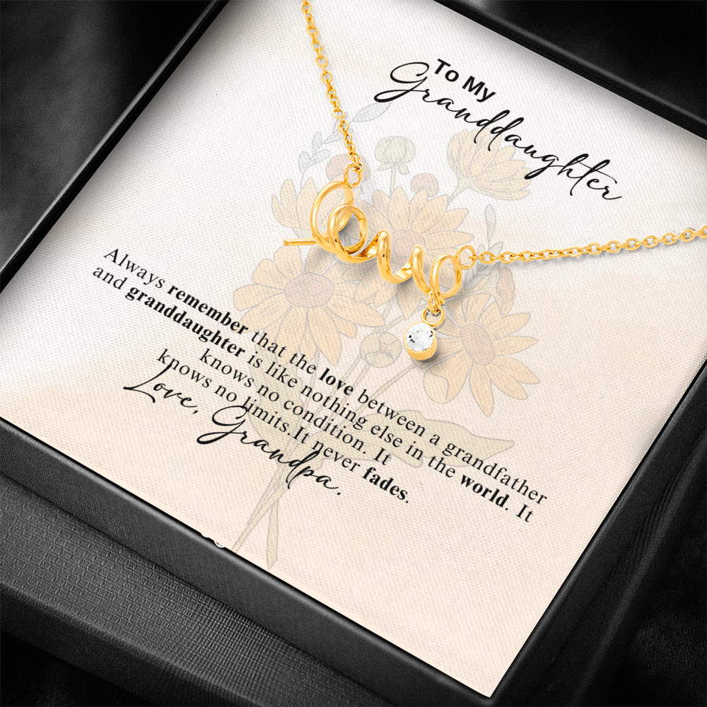To My Granddaughter Scripted Love Necklace- A Gift from a Grandfather.
