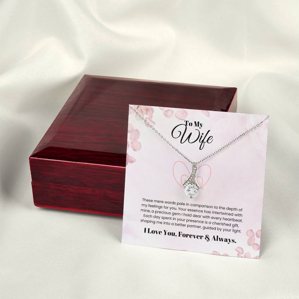 Imagine her reaction when she opens this stunning gift! The Alluring Beauty necklace features a petite ribbon shaped pendant that is sure to dazzle your special someone. Whether it's a birthday or anniversary, make sure to get her a gift she will love for years to come.
