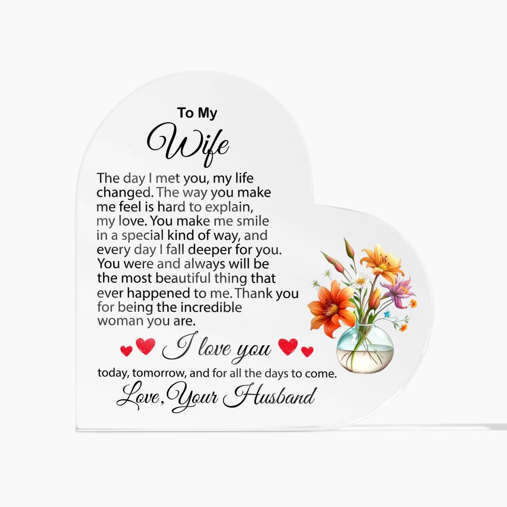 To My Wife: The day I met you, my life changed. The way you make me feel is hard to explain, my love. You make me smile in a special kind of way, and every day I fall deeper for you. You were and always will be the most beautiful thing that ever happened to me. Thank you for being the incredible woman you are. I love you. today, tomorrow, and for all the days to come. Love, Your Husband.