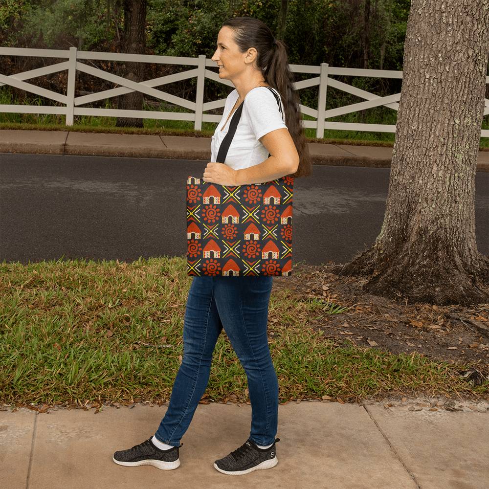 Our Tribal Huts Classic Tote Bag is constructed from soft, lightweight polyester with a non woven laminate lining and features a unique design. This would make an ideal gift for your beloved partner, family members, or dear friends on special occasions like birthdays, anniversaries, or any event where you want to express your love and appreciation in an unforgettable way.