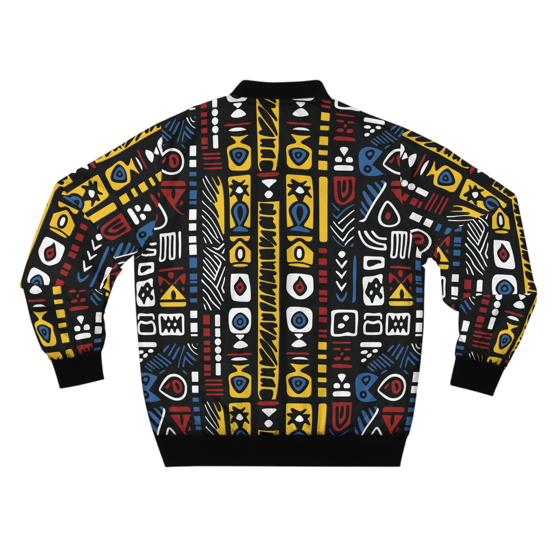 Elevate your everyday look with this fashionable all-over print bomber jacket featuring a ribbed stand-up collar, elastic cuffs, and elasticized hem. The durable zipper and two pouch pockets add functionality to your unique style. Perfect for those who want to make a statement with their fashion choices. Ideal for casual outings, street style, and urban settings. Relevant for fall and winter seasons, as well as casual events and gatherings.