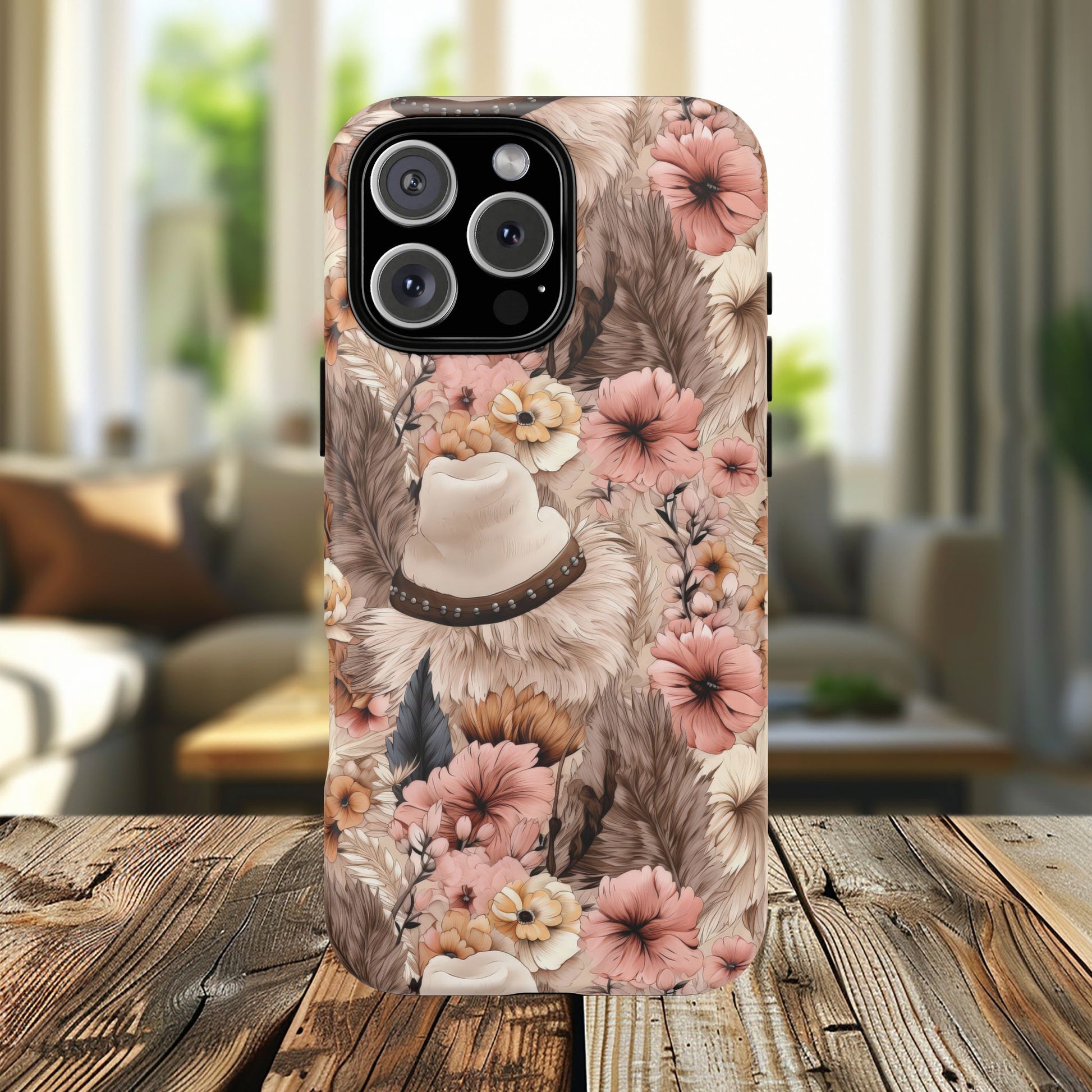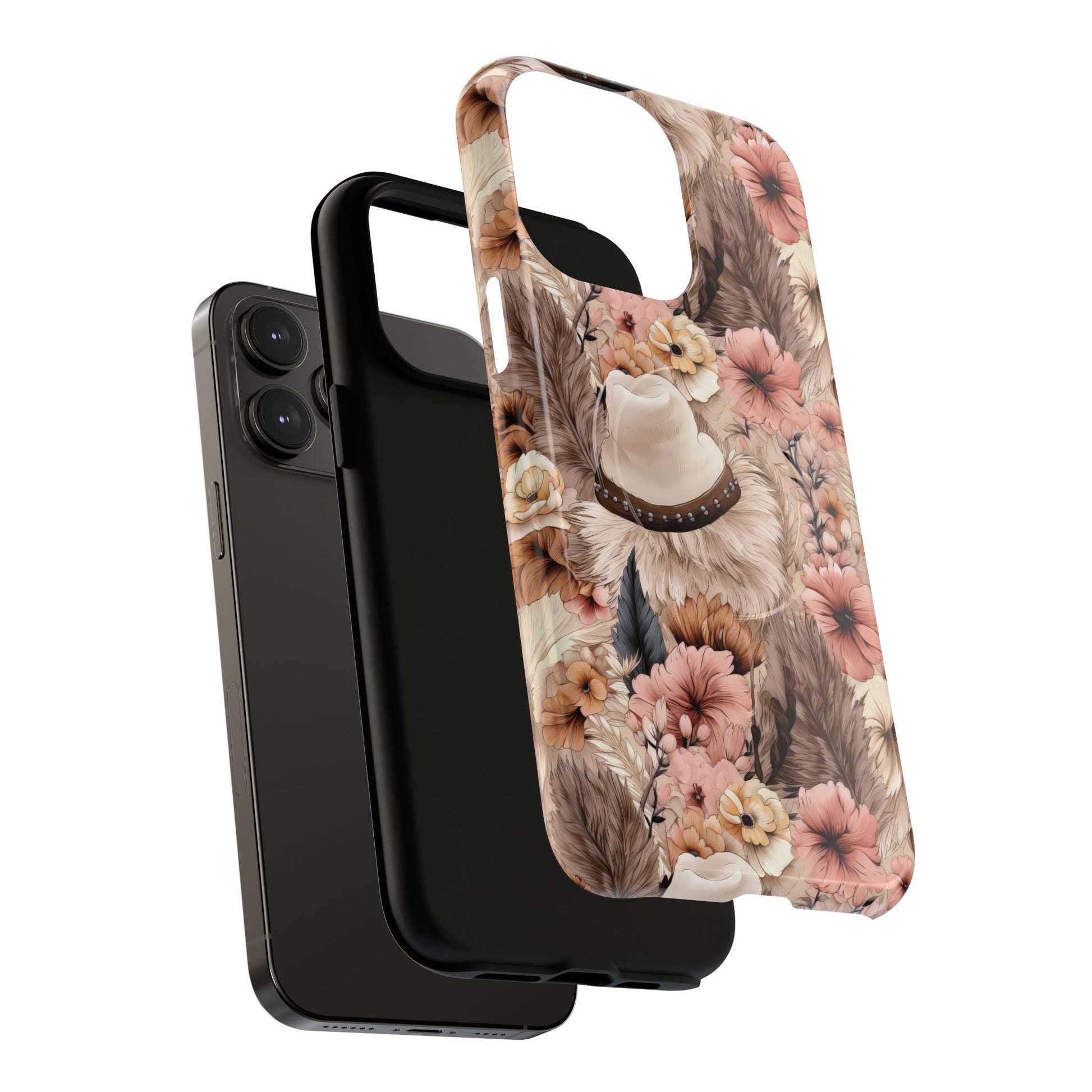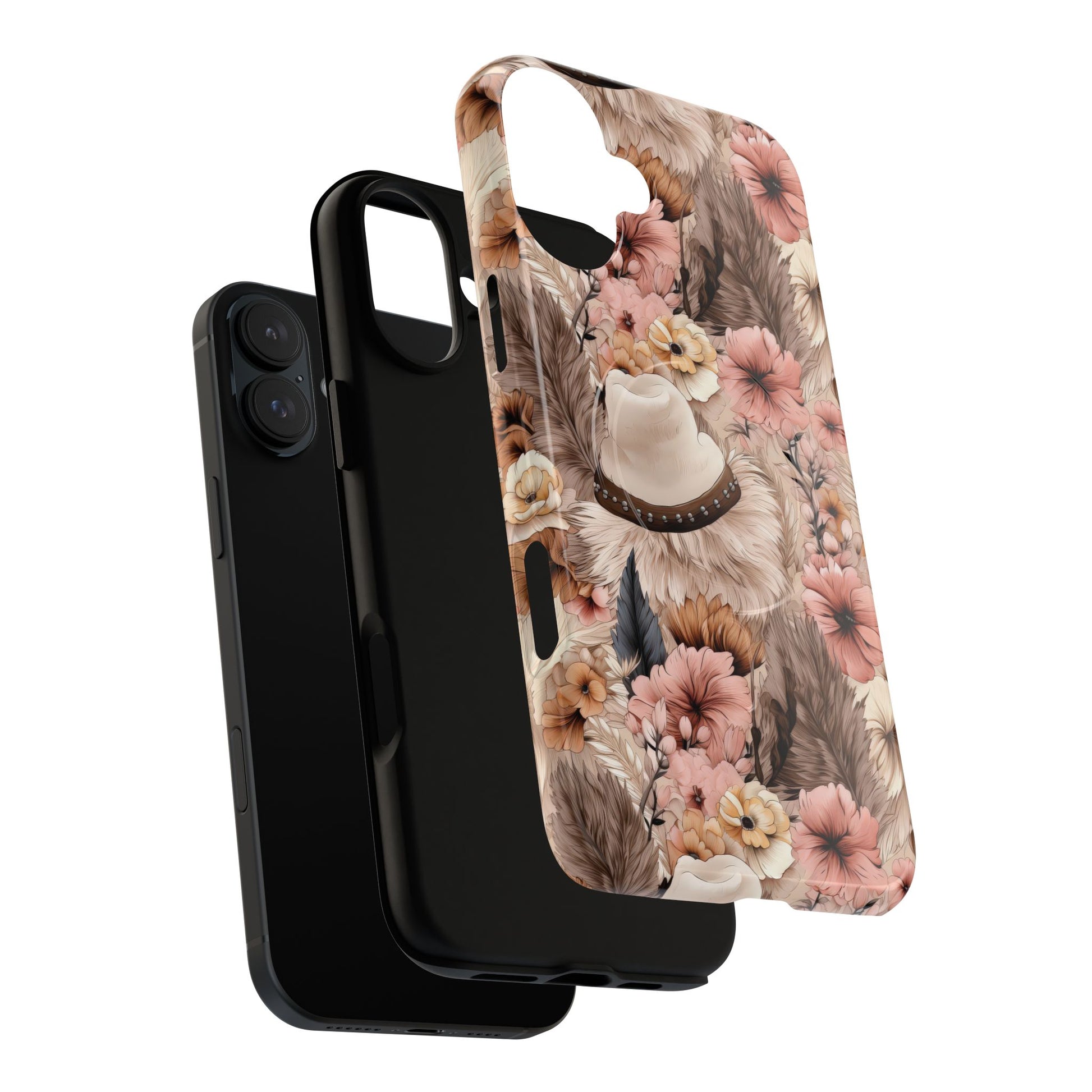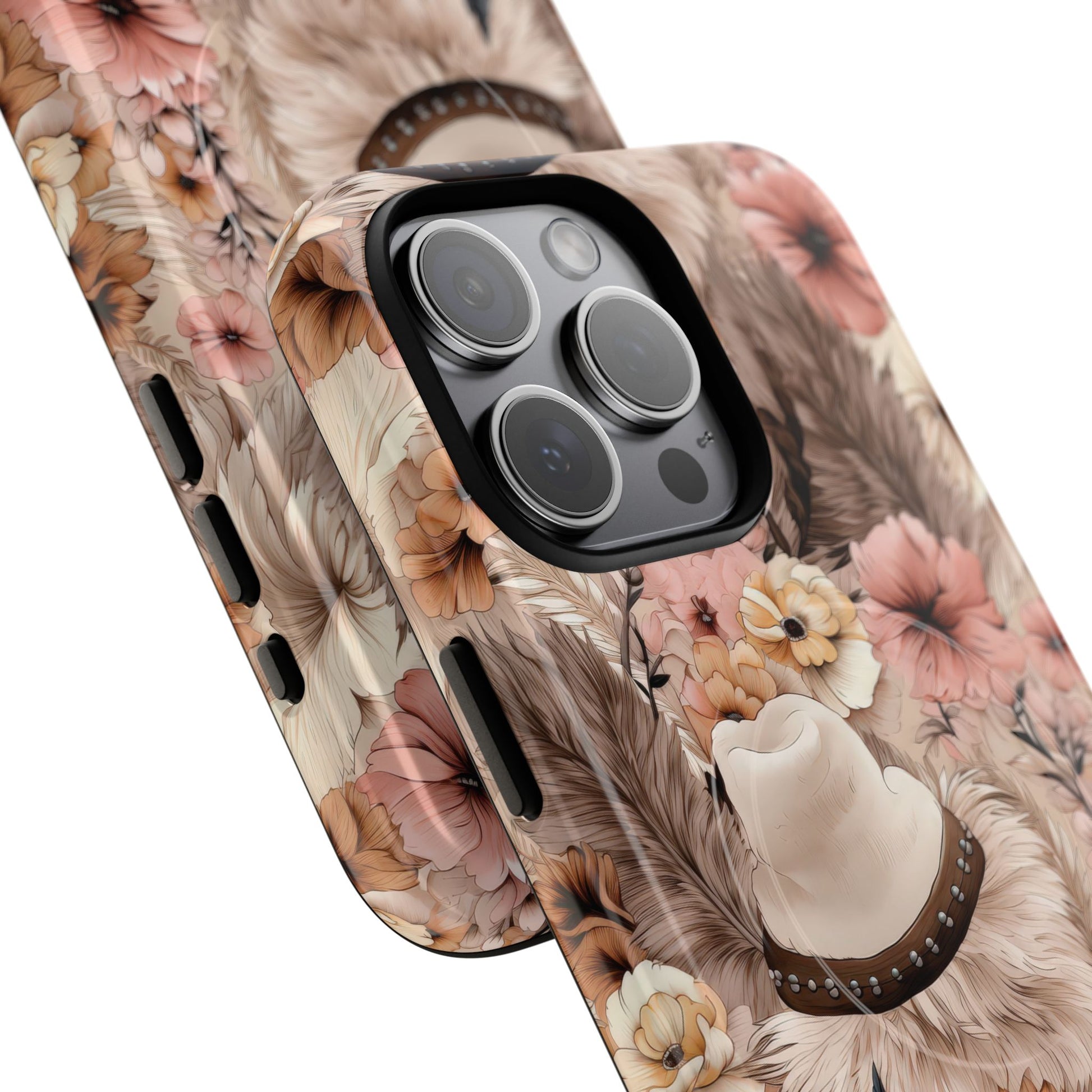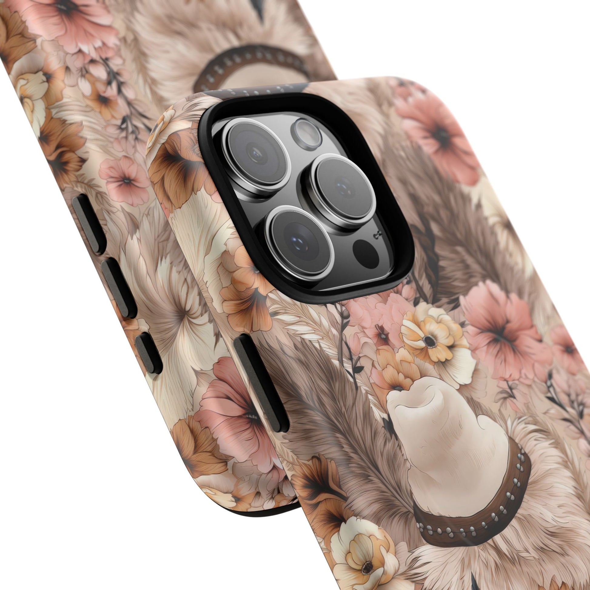Western Boho Tough iPhone Magnetic Case A tapestry of feathers and blossoms in this earthy bohemian design.
