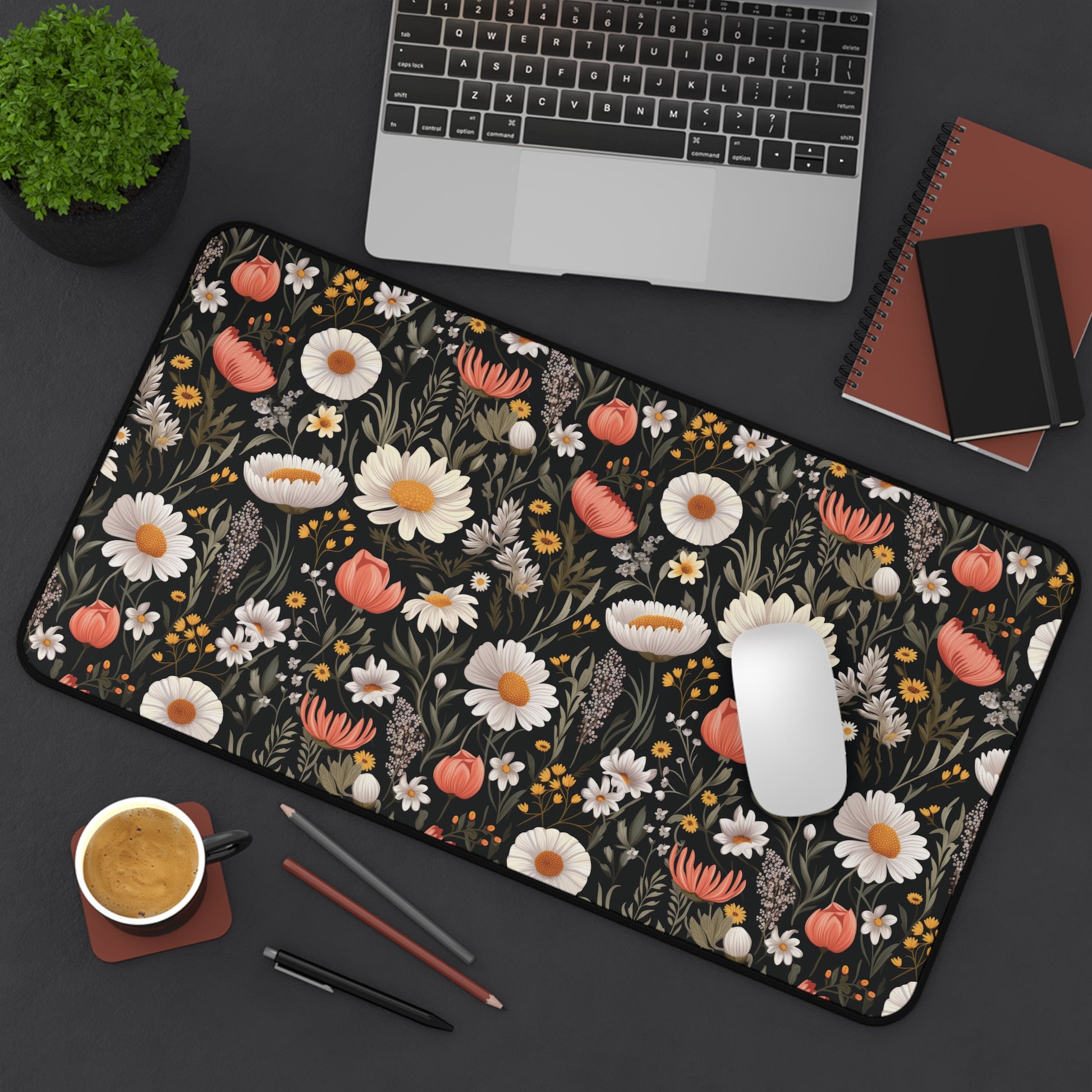 Personalize Your Workspace with the Blossom Elegance: Noir Garden Desk Mat!
