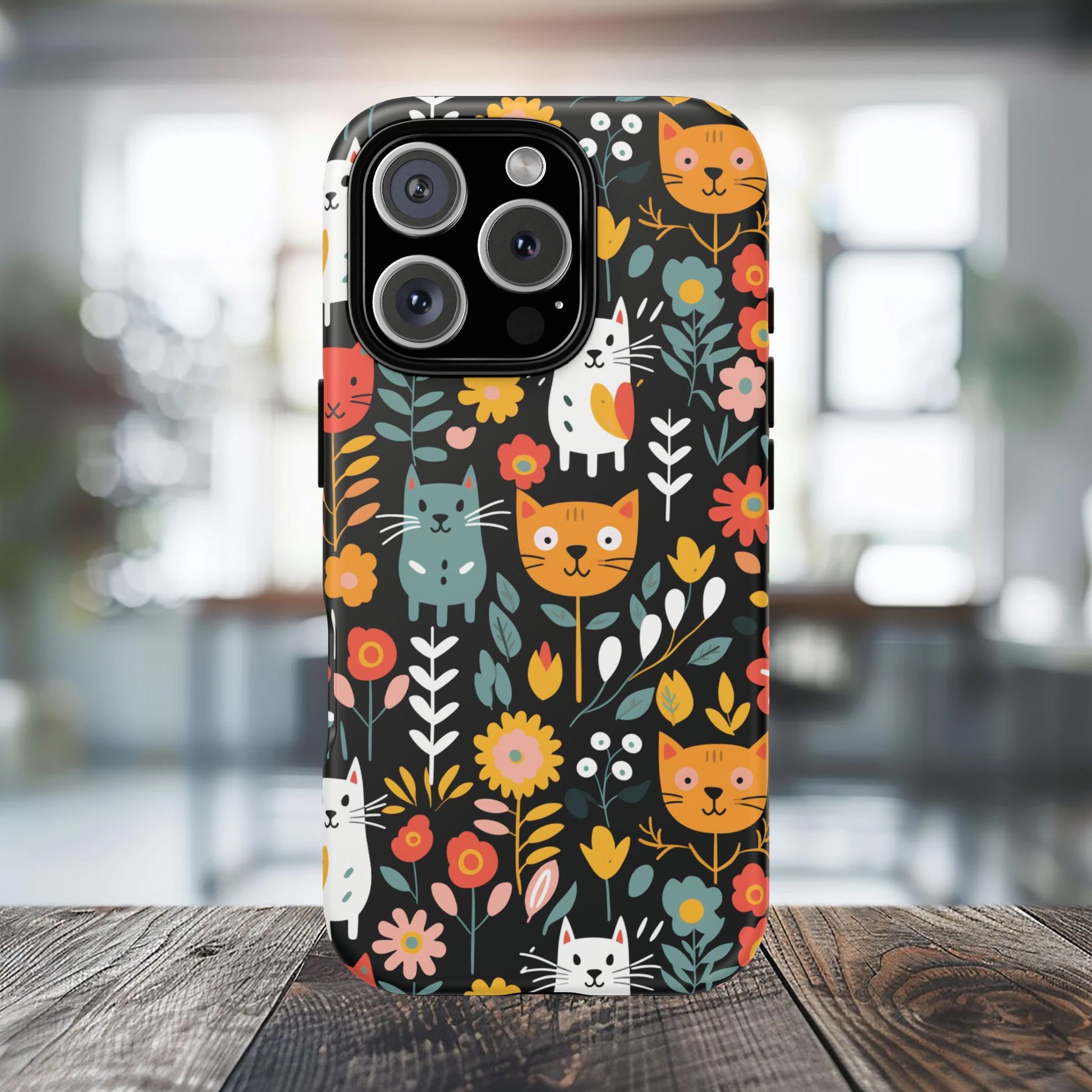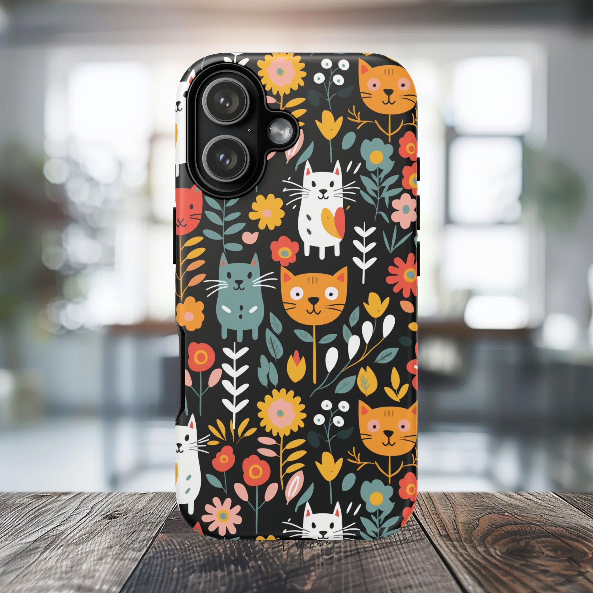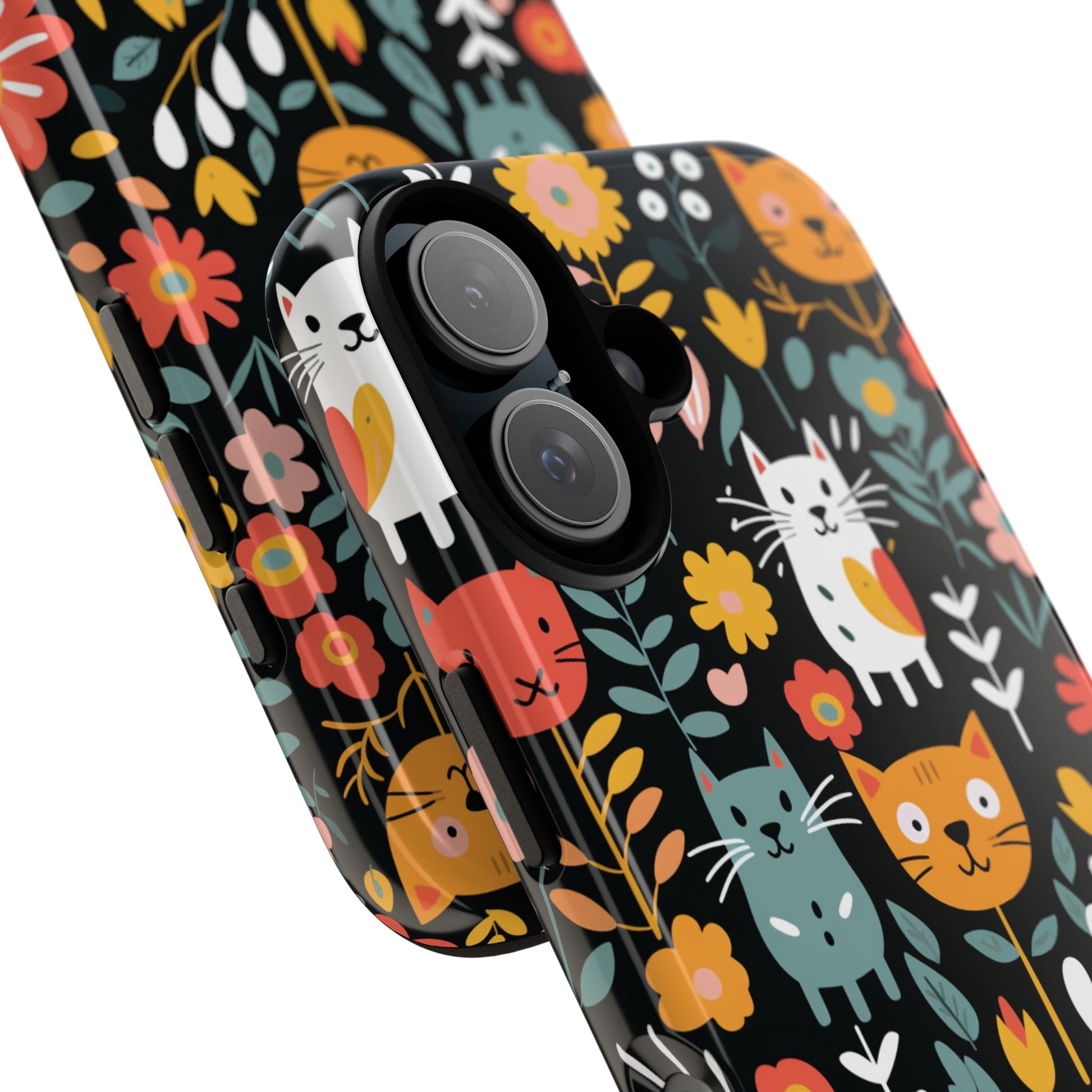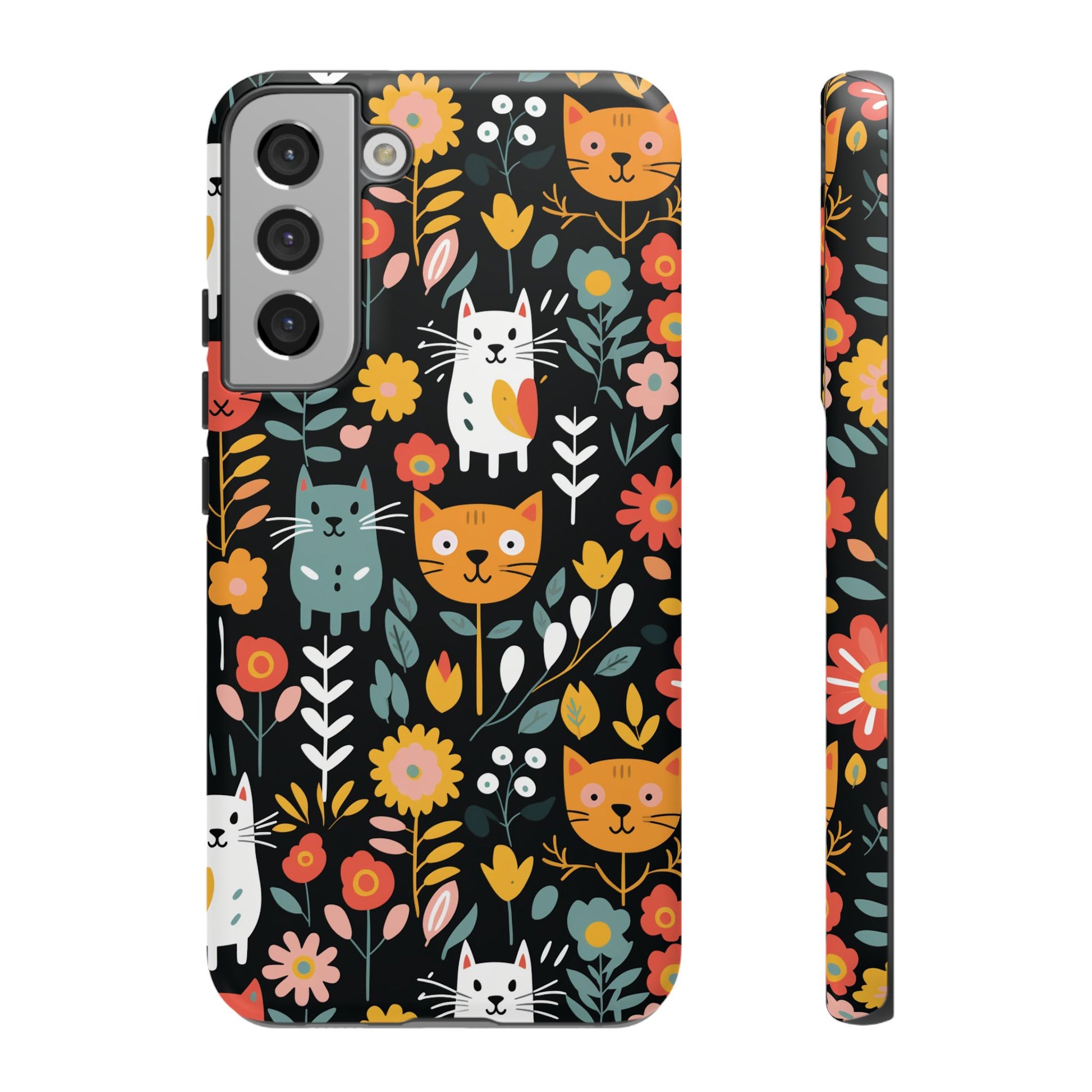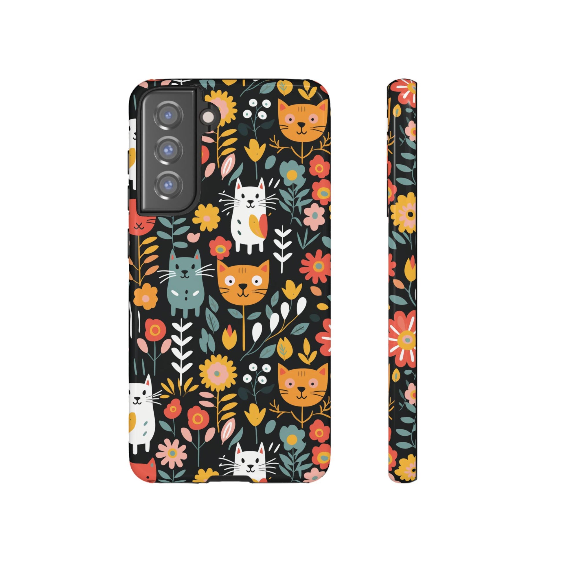 Protect your iPhone, Samsung Galaxy and Google Pixel with premium-quality custom protective phone cases from the Whimsical Feline Garden collection. Every case features delightful designs of playful cats amidst vibrant flowers, adding a unique touch to your phone while providing superior protection.