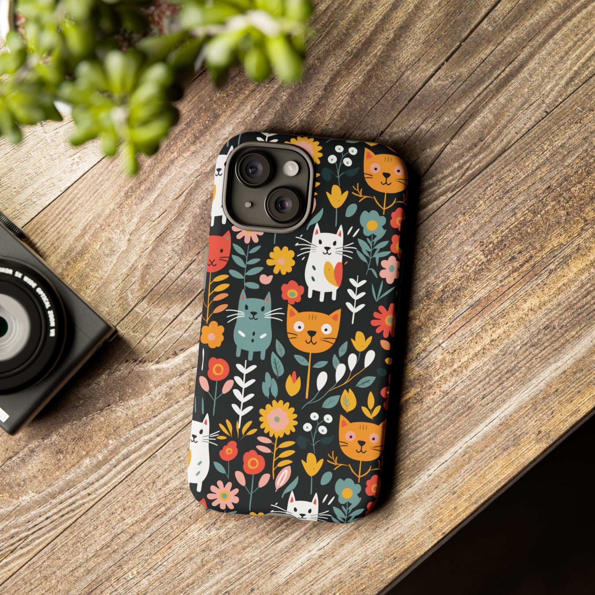 Whimsical Feline Garden iPhone, Samsung or Google Pixel Tough Cases