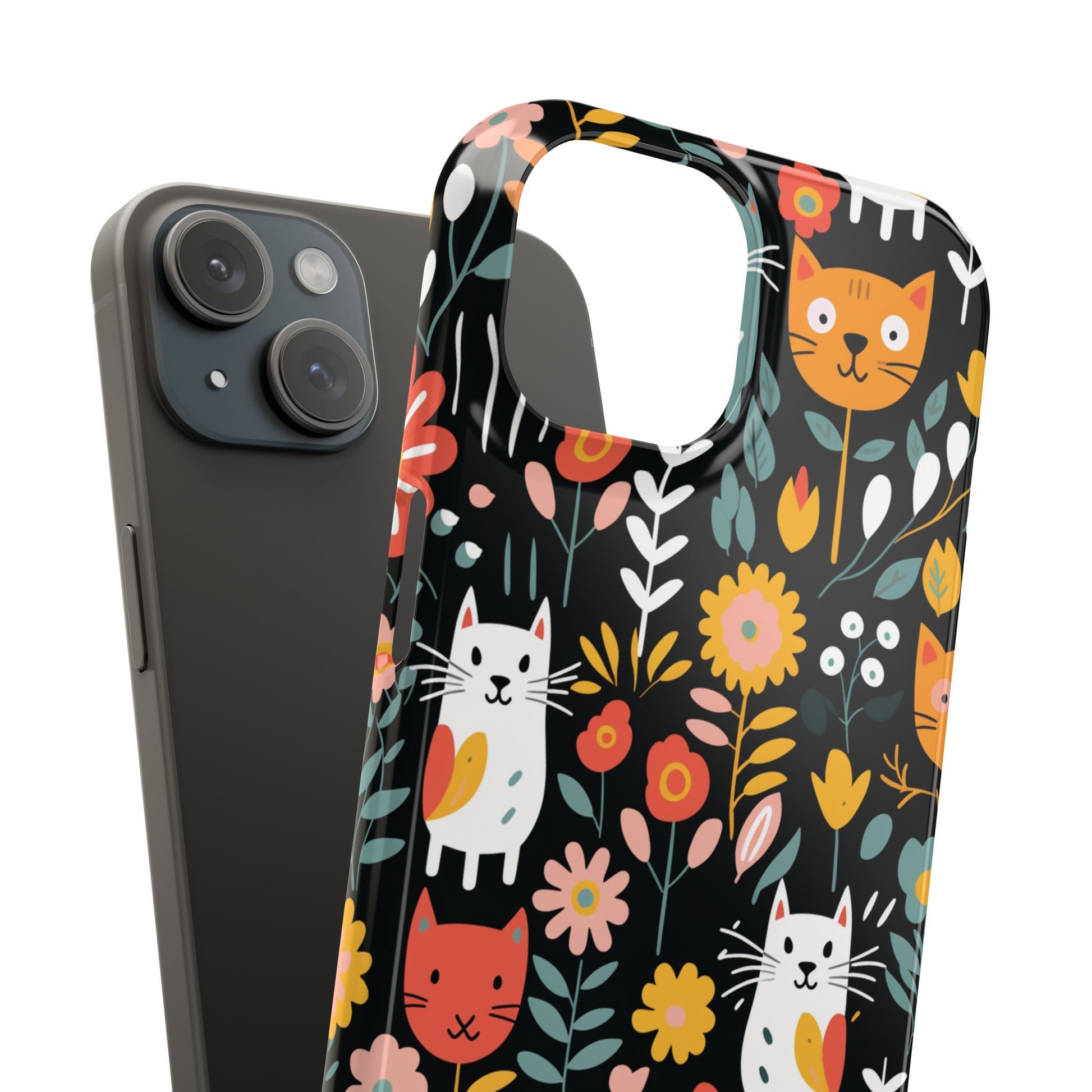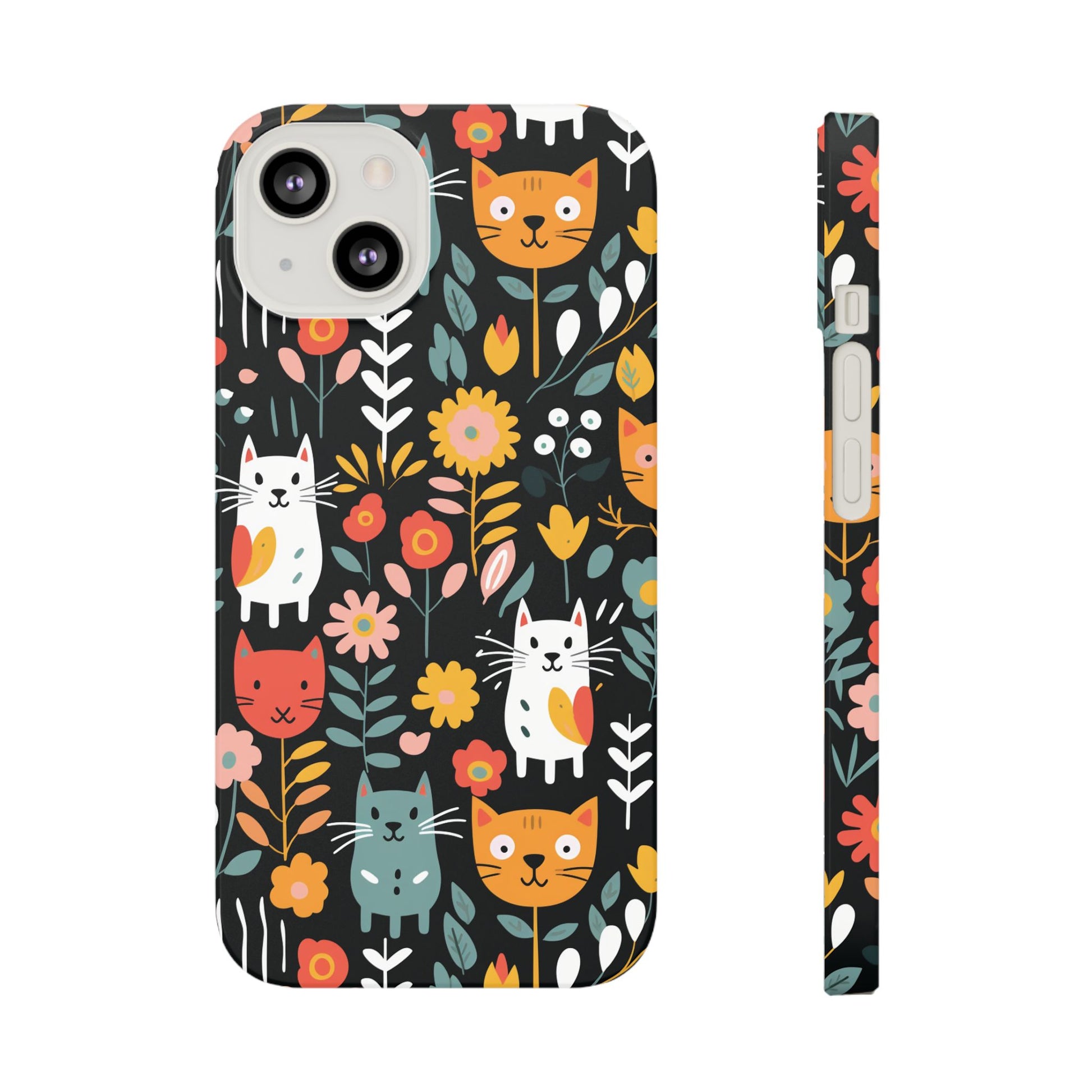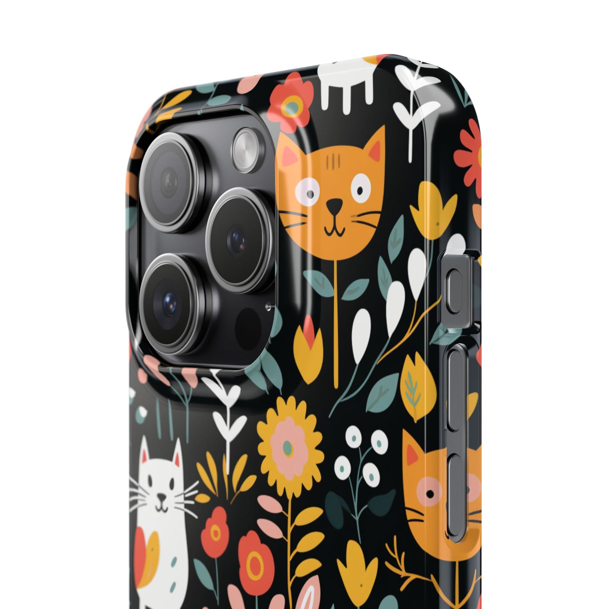 Bring a little garden whimsy to your everyday carry. This slim phone case wraps your device in vivid, full-bleed artwork of playful cats among blooms — bright, crisp colors that pop whether you choose a glossy or matte look. The slim polycarbonate shell keeps your phone feeling light in hand while providing reliable resistance to scratches and chips. It hugs your phone without adding bulk, lets you charge wirelessly, and shows off the design edge-to-edge so the scene feels uninterrupted. Carry a bit of joy with you: it’s the kind of case that sparks a smile when you slide your phone out, blends easily into a busy commute or a sunny café table, and still protects the pieces that matter.