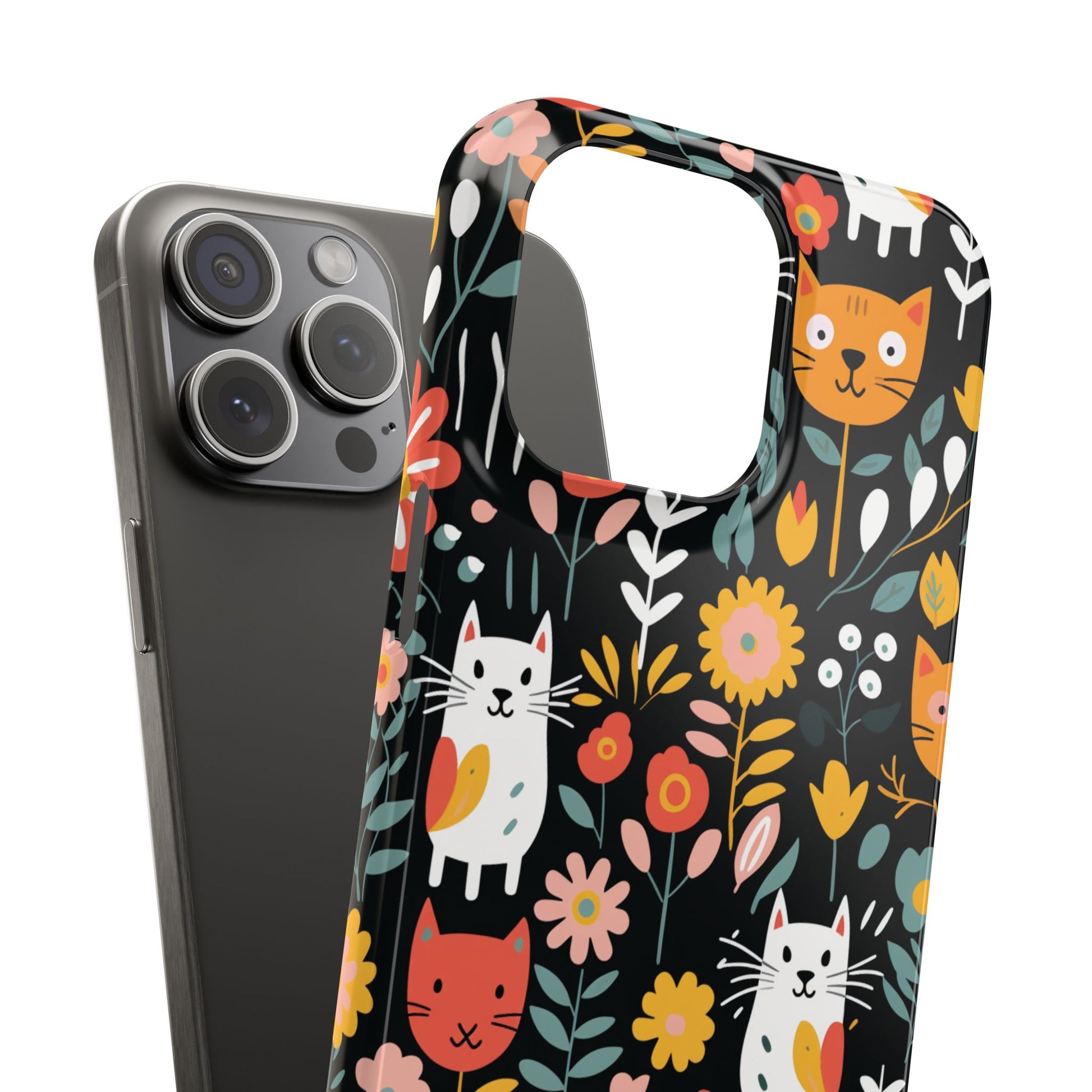 Whimsical Feline Garden iPhone Case — Slim Floral Cat Design (Matte or Glossy) for iPhones.