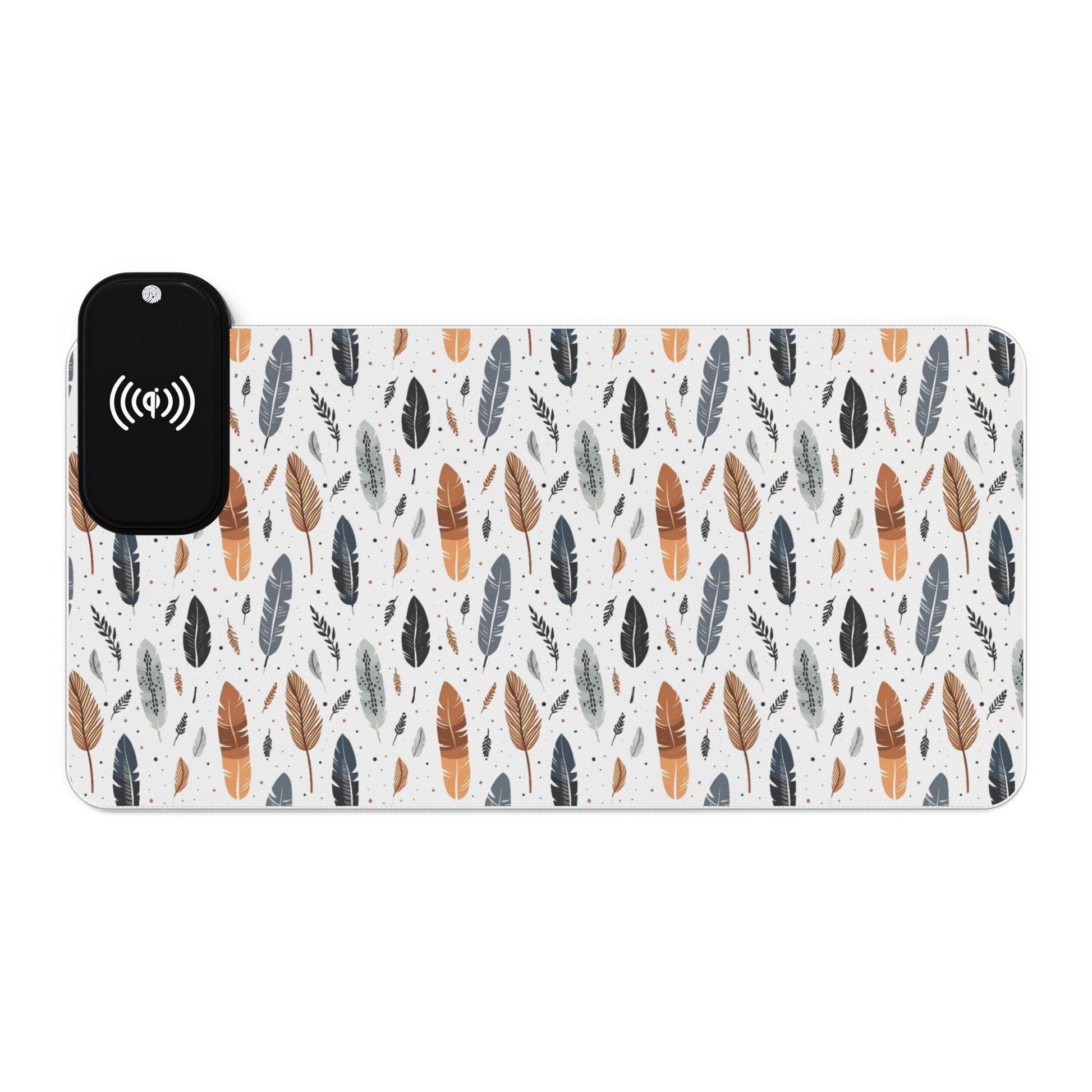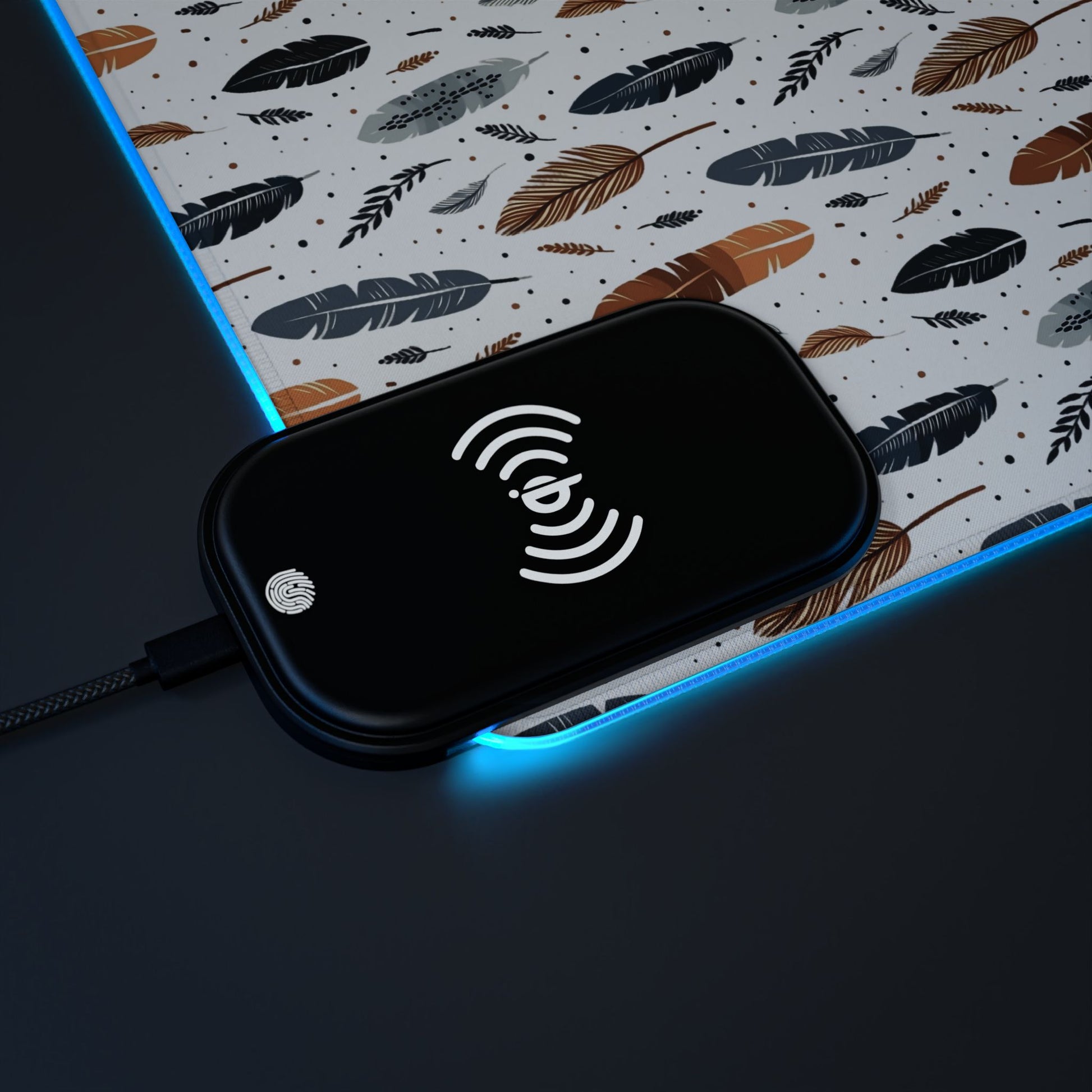 Whispering Feathers LED Gaming Mouse Pad, Wireless Charging