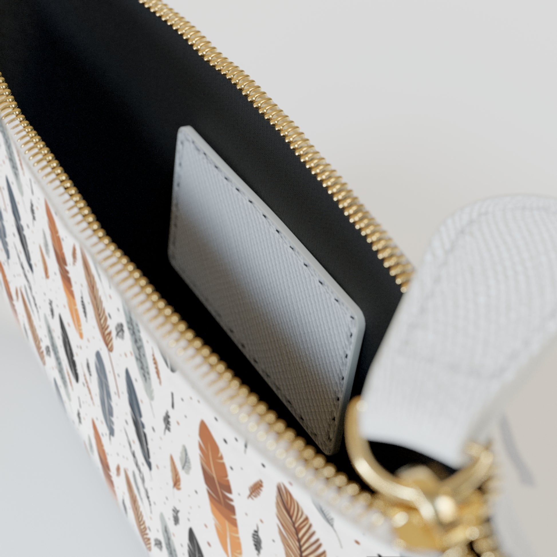 Whispering Feathers Print Mini Clutch Bag, Cute Cosmetic Pouch, Travel Organizer, Gift for Her, Boho Style Clutch, Birthday Gift