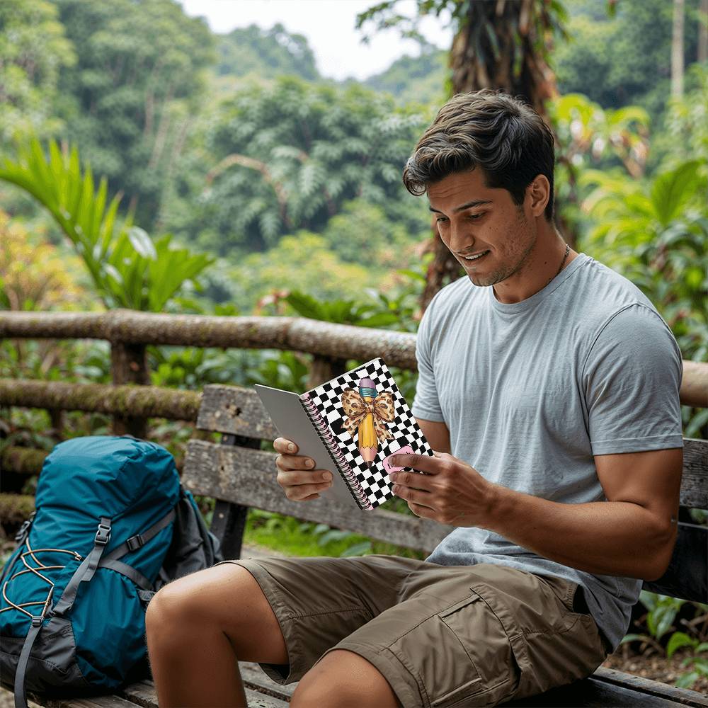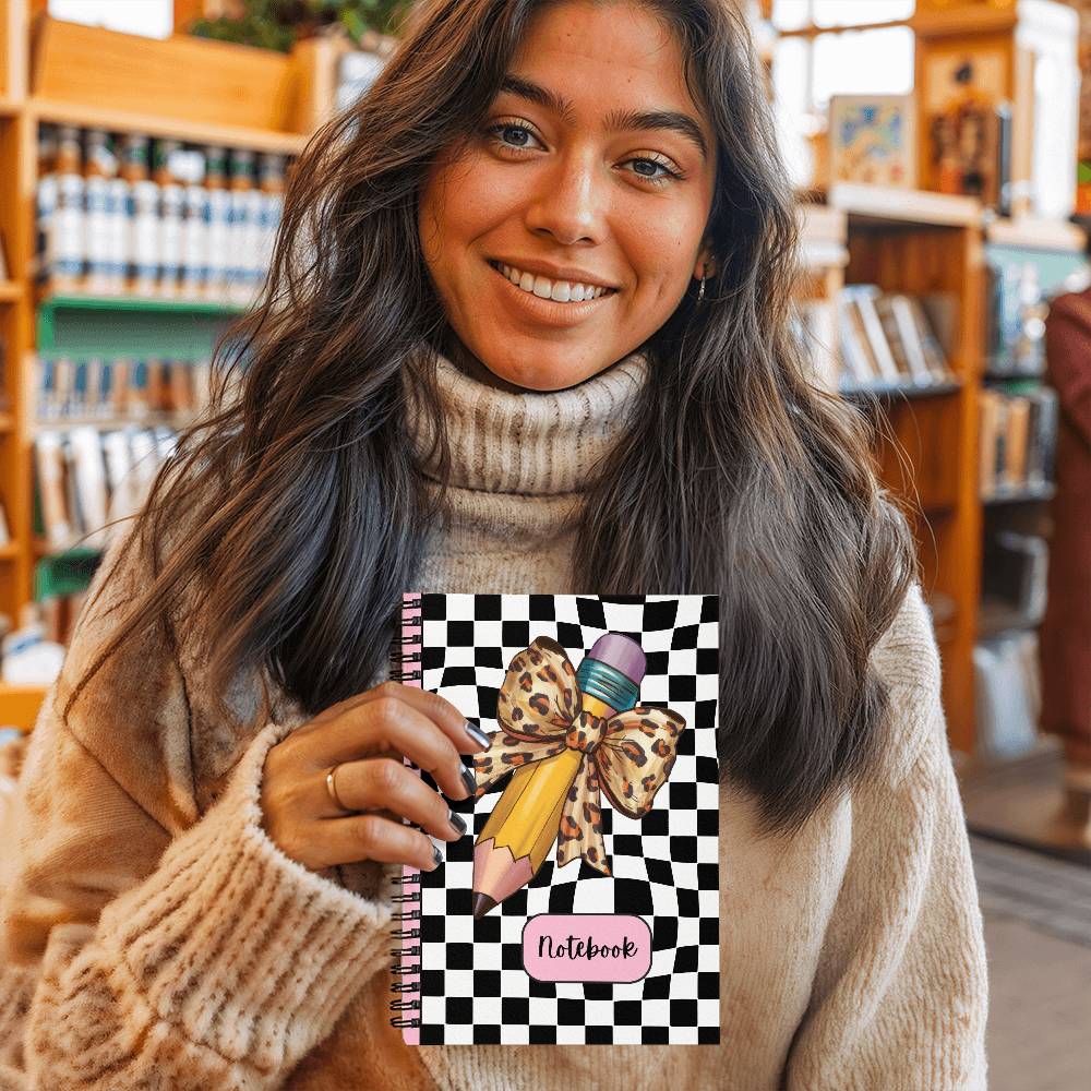 Introducing the Wild Style Checkered Notebook, a bold and playful journal designed to bring a touch of flair and organization to your school days. Measuring a convenient 6" x 8", this spiral-bound notebook features a striking checkered cover with a trendy leopard bow and pencil design, perfect for students and stationery lovers of all ages. With 120 pages of premium quality paper, it’s the ideal companion for taking notes, sketching, or organizing your thoughts.